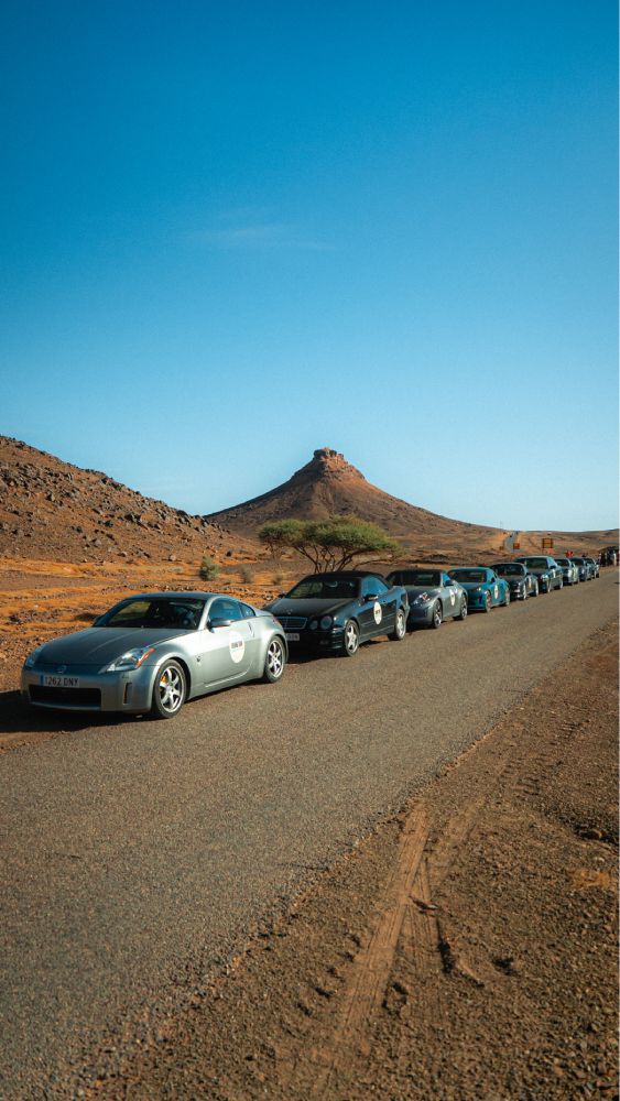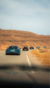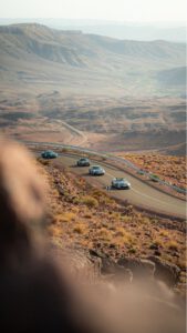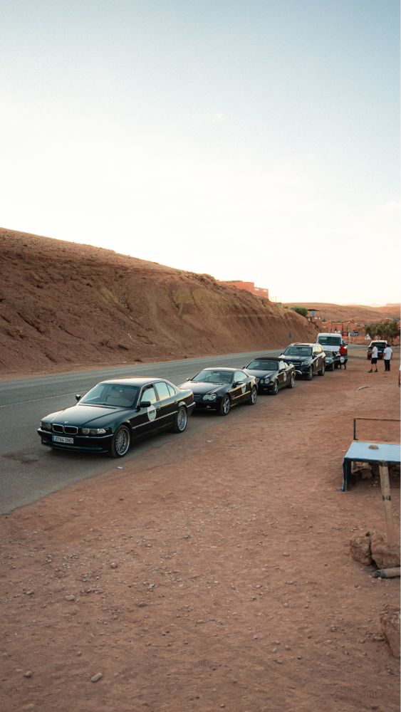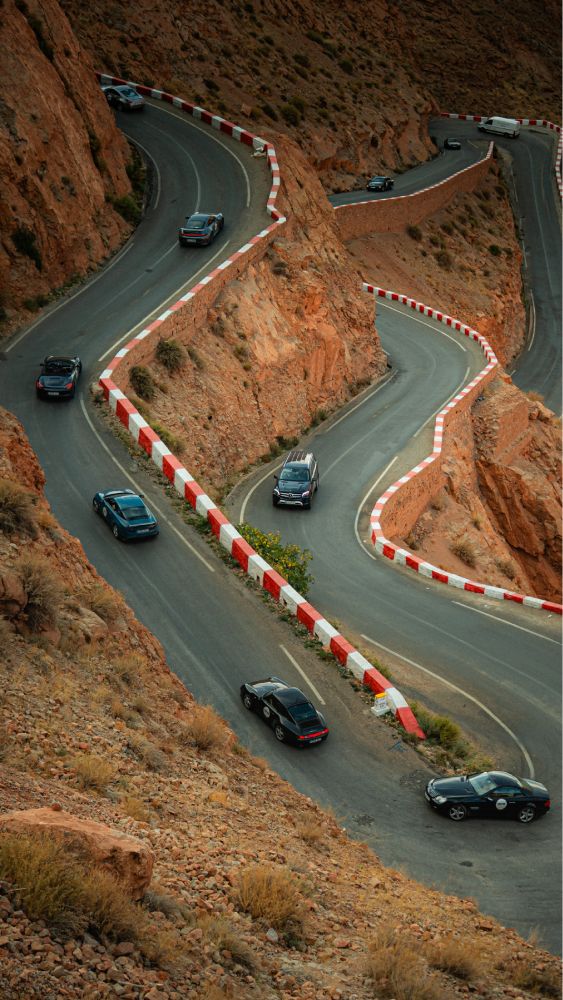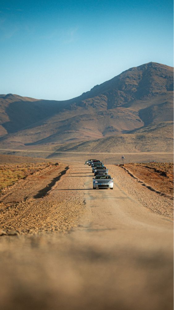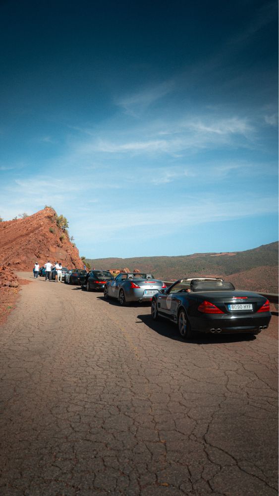 El momento clave del día fue subir otro puerto de montaña, de esos que son difíciles de encontrar, con buen asfalto, sin tráfico, vistas desafiantes y abrumadoras, la cola de deportivos subiendo era una estampa mágica a medida que cruzábamos el Jbel Saghro.